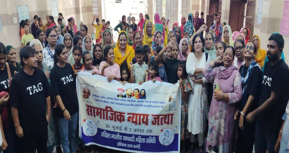 करनाल, अभी अभी। जनवादी महिला समिति का सामाजिक न्याय जत्था रोहतक से चल कर करनाल पहुंचा। करनाल जिला के मंगलौरा, सोहाना व फूसगढ़ गांवों में कार्यक्रम आयोजित किए गए। तीनों जगहों पर महिलाओं ने फूल मालाओं के साथ जत्थे का स्वागत किया गया। जत्थे का नेतृत्व जनवादी महिला समिति की राज्य महासचिव उषा सरोहा, राज्य […]