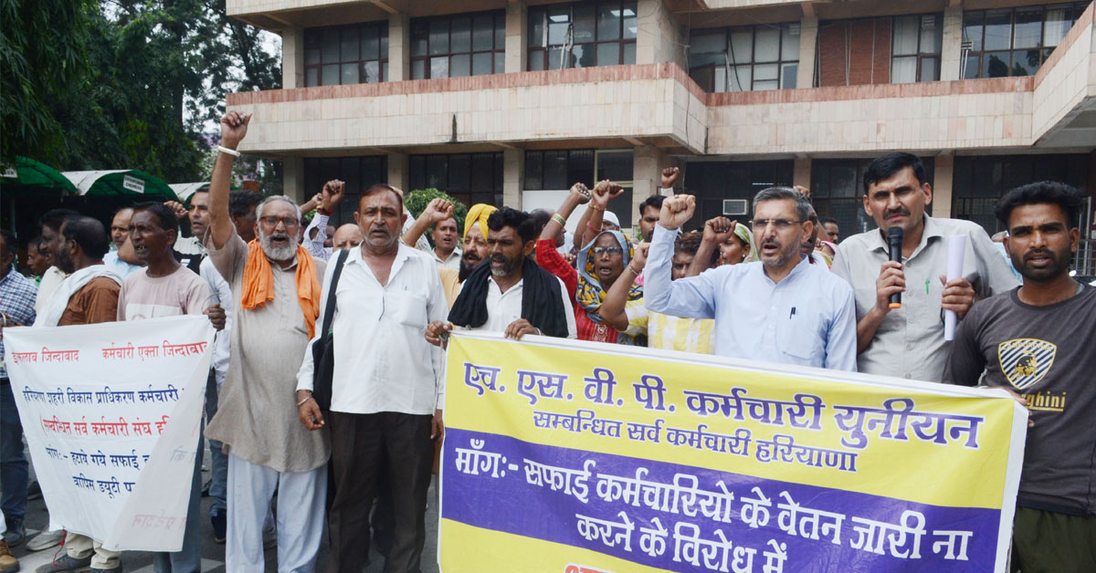 #Protest दो महीने का वेतन नहीं दिया, फिर काम से हटा दिया, गुस्साए कर्मचारी सडक़ों पर उतरे करनाल, अभी अभी। एचएसवीपी कर्मचारी यूनियन के बैनर तले 65 दिनों से धरने पर डटे कच्चे सफाई कर्मचारियों ने गुरुवार Devender Gandhi / 6 months Comment (0) (41)